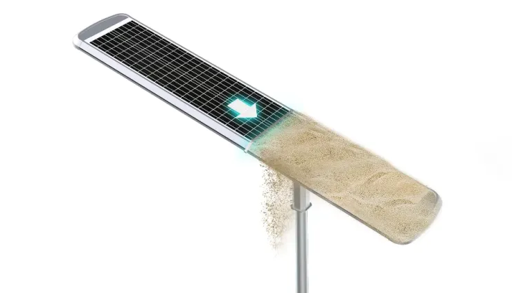 У приборов данной серии есть функция самоочистки, которая также может снизить ответственность за накопление грязи или снега, препятствуя перезарядке аккумулятора солнечной панелью. Частоту функции самоочистки можно запрограммировать на автоматическую очистку солнечной панели движущейся щеткой до 6 раз в день, поддерживая оптимальную солнечную зарядку аккумулятора. Щетка с автоматической очисткой очищает от грязи, снега и дождя.